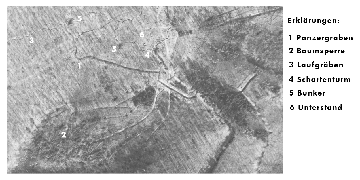 Für die Erforschung bringt dies jedoch die ein oder andere Schwierigkeit mit sich, da wir oftmals vor der Frage stehen, ob nun bestimmte Strukturen in der Natur etwas mit dem Westwall zu tun haben oder nicht. Eine große Hilfe ist dabei die Auswertung von Luftbildern, die während oder unmittelbar nach dem Krieg gemacht wurden. Anhand dieser Analyse sind wir dann in der Lage die Fragen in den richtigen historischen Kontext zu setzen.